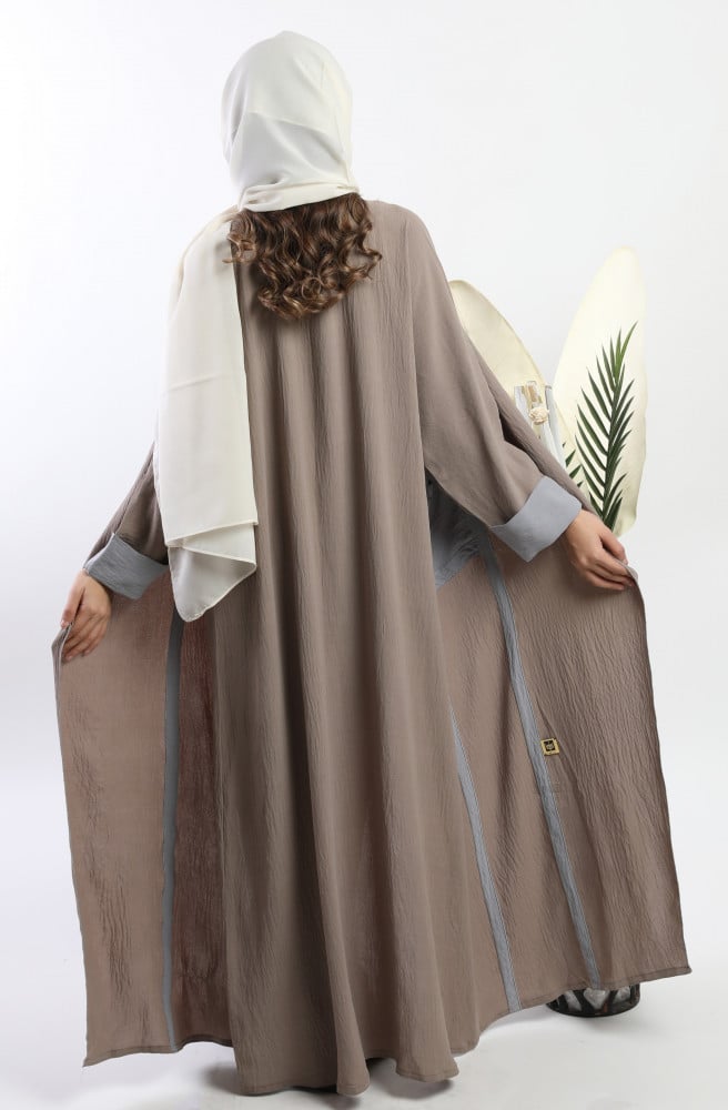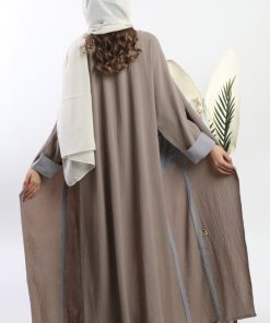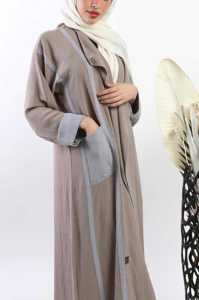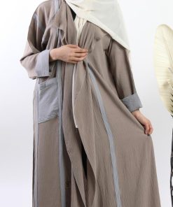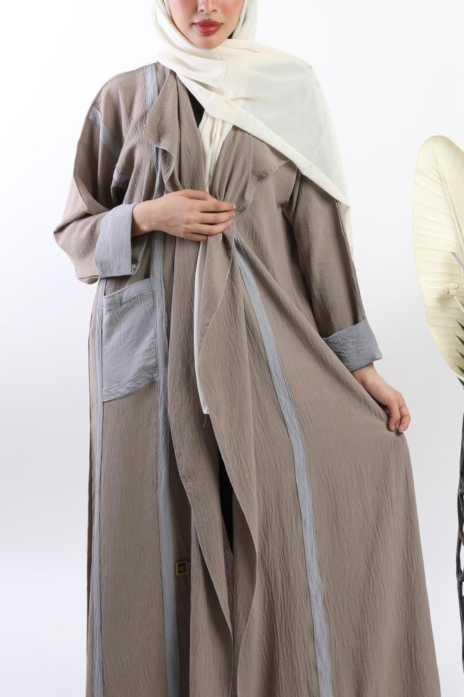 أمول – عباية سوداء بقماش مقلم في الكم والاطراف R1097