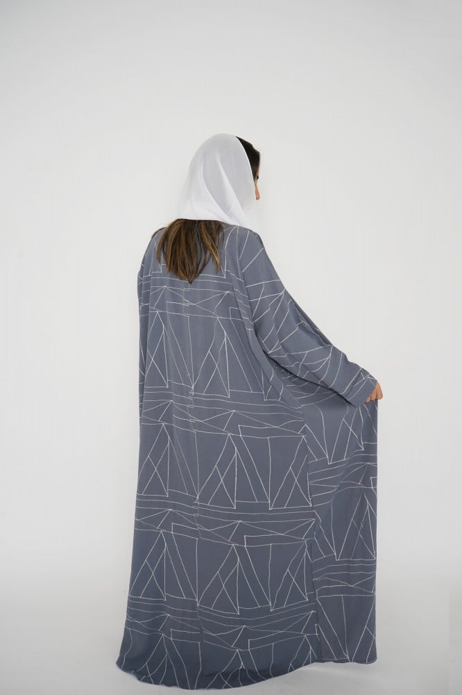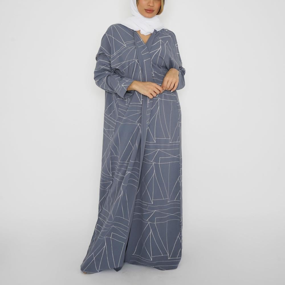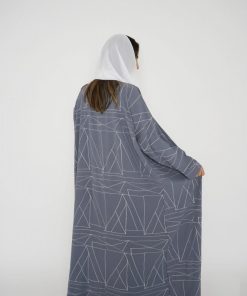 أمول – عباية سوداء بقماش مقلم في الكم والاطراف R1097