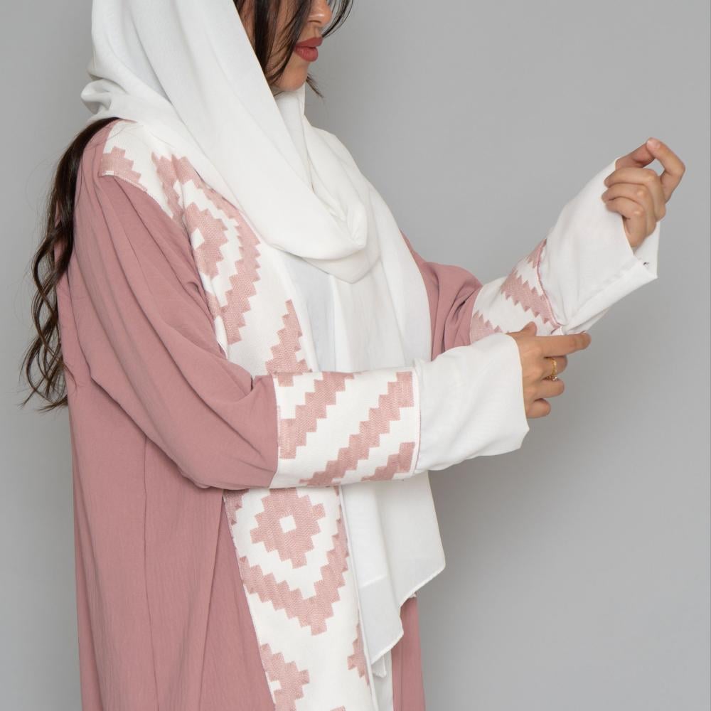 أمول – عباية سودا ء تطريز شك يدوي لون ابيض على شكل ورود 6051