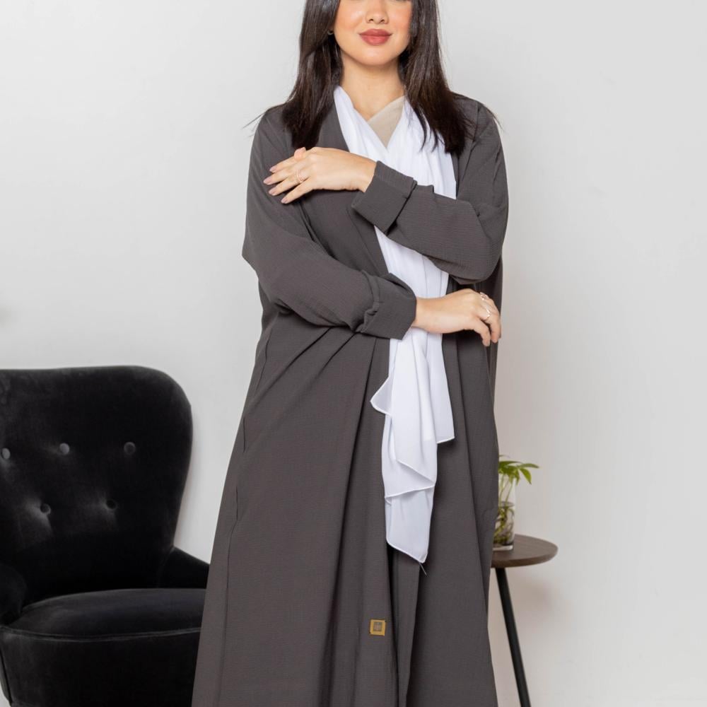 أمول – عباية سوداء بطقطق وجيوب مطرزة من الجنب N1073