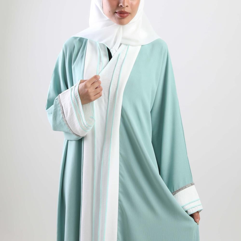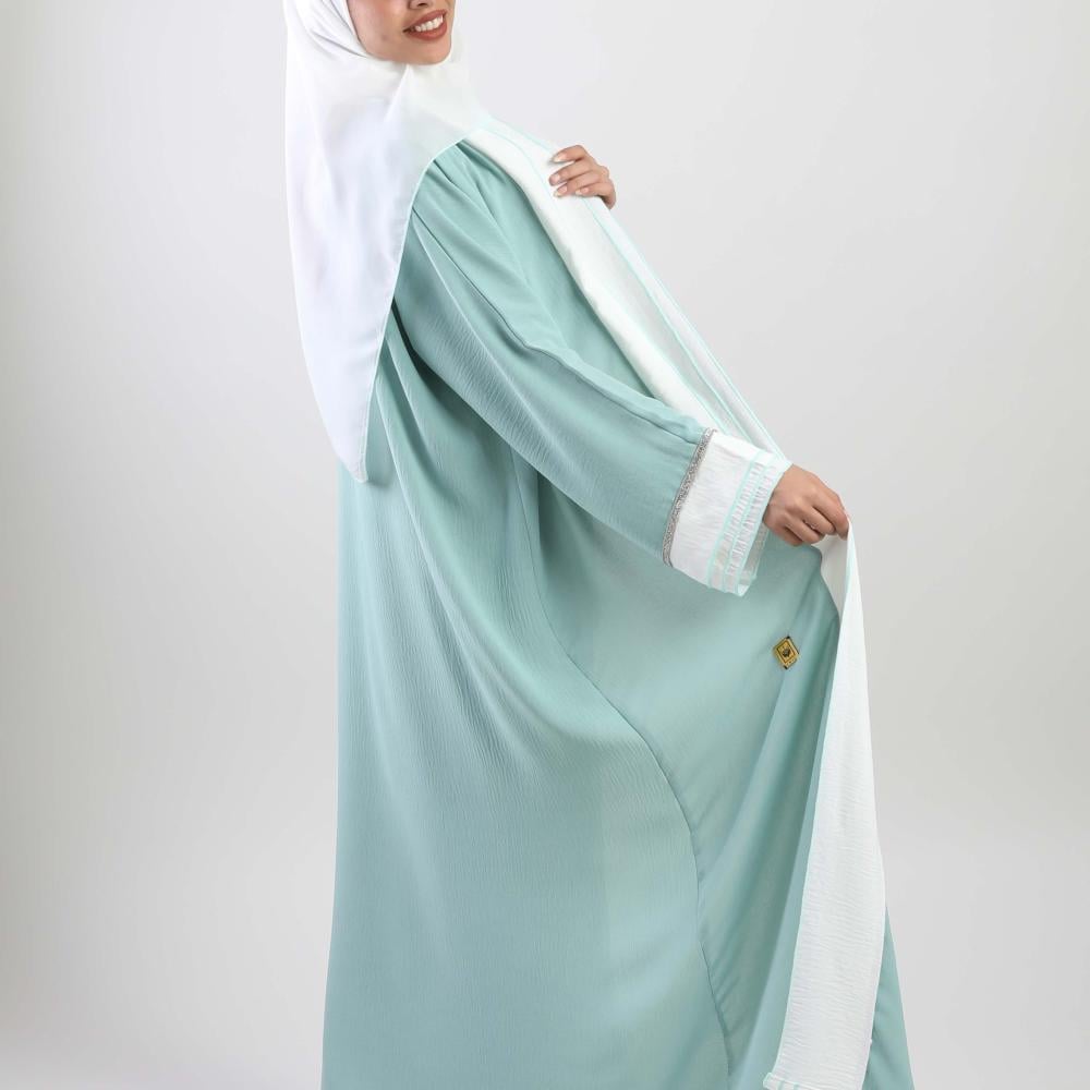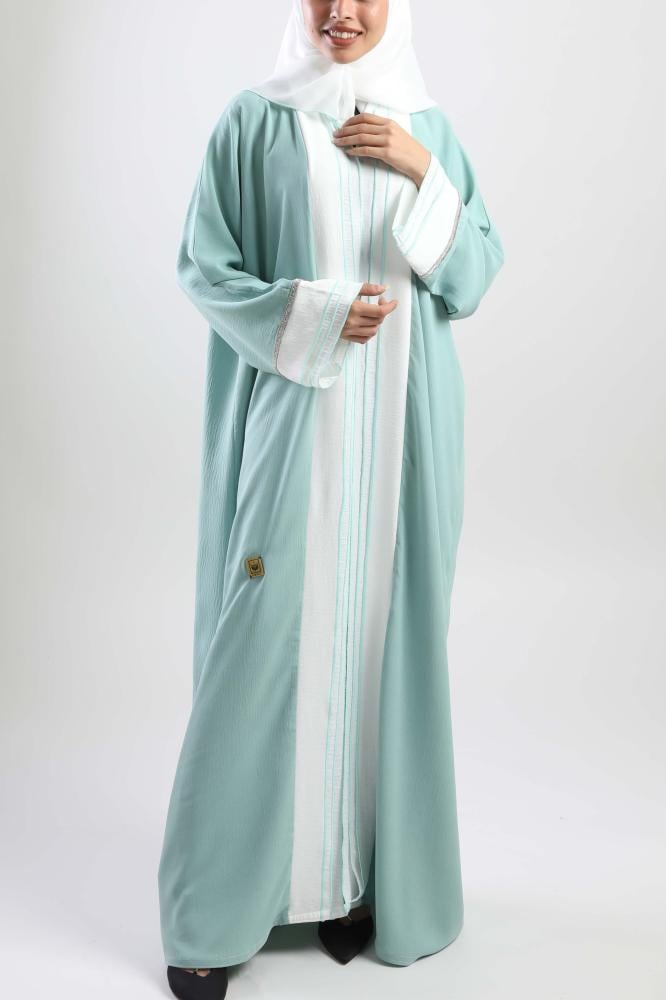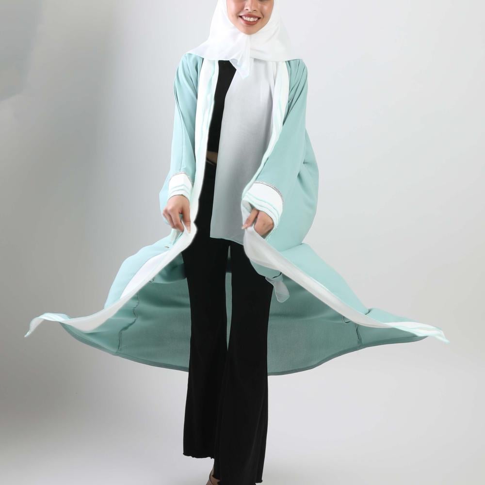 أمول – عباية سودا ء ربع كلوش تطريز كمبيوتر لون ابيض و اسود 6046
