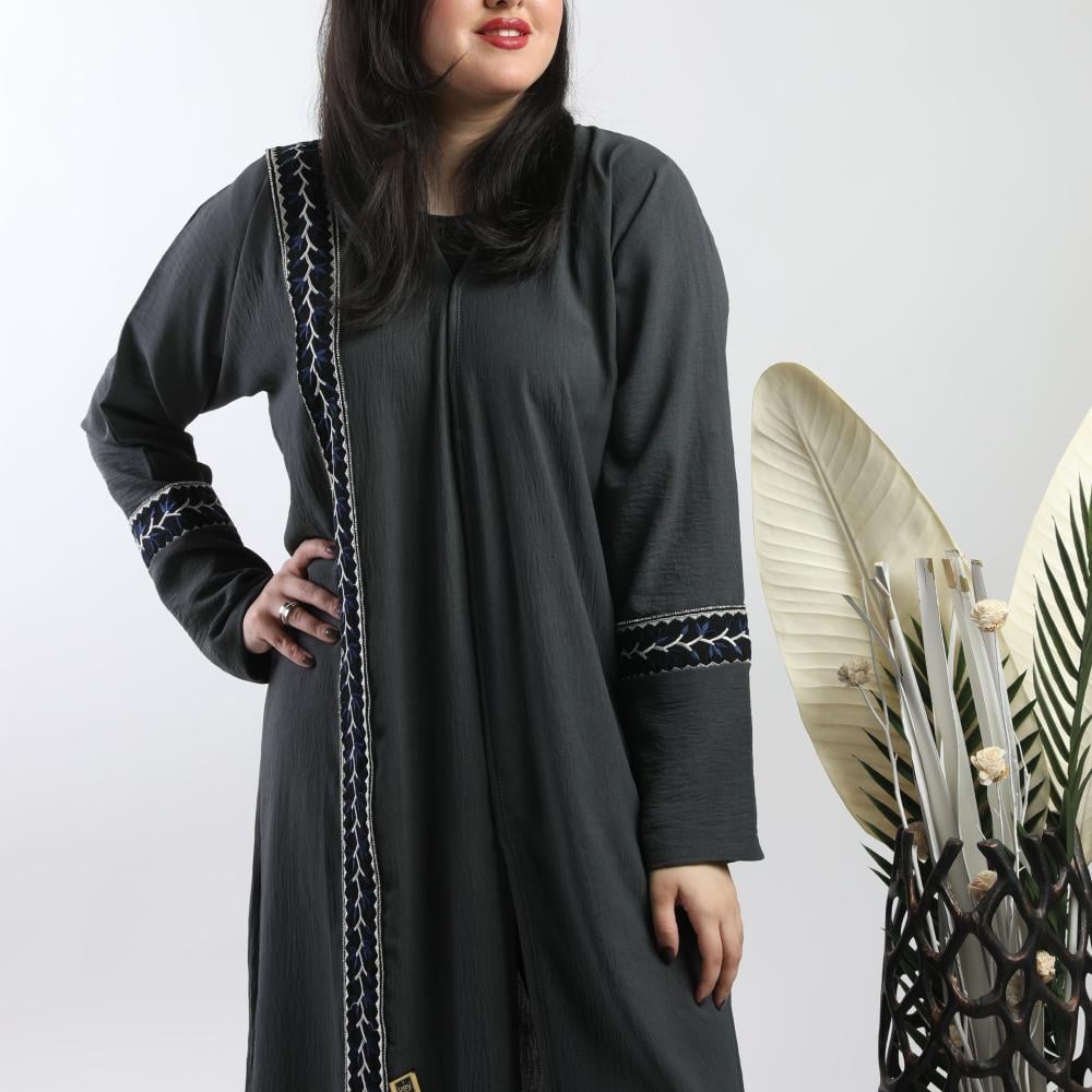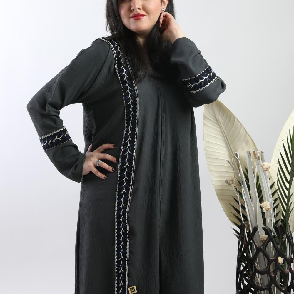 أمول – عباية سودا ء بتطاريز خيوط مقلمة اسود و كحلي ولون اسود دانتيل عروق 6047