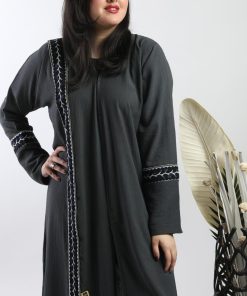 أمول – عباية سودا ء تطريز شك يدوي لون ابيض على شكل ورود 6051