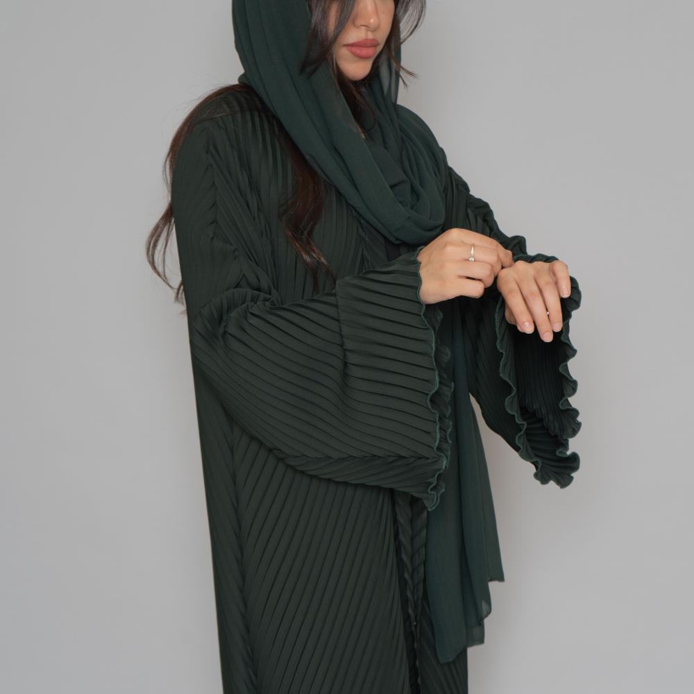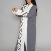 أمول – عباية سودا ء مطرز بخيوط طوليه باشكال متداخله لون ابيض و جالكسي 6058