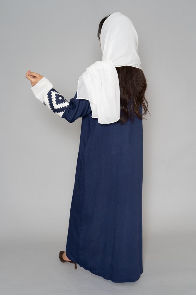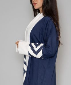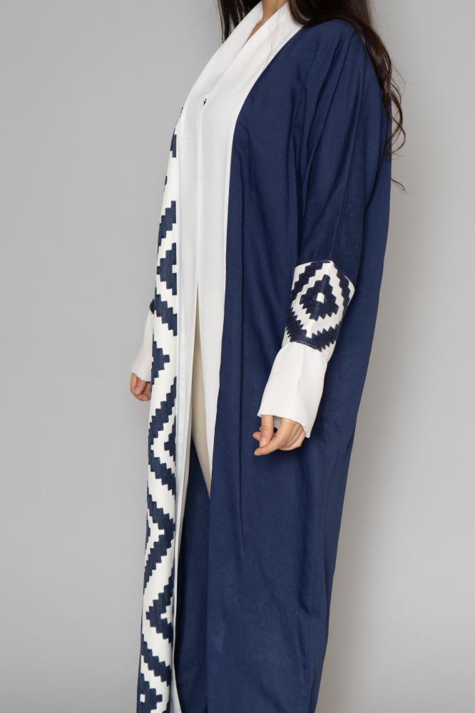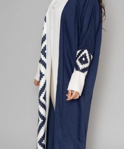 أمول – عباية سودا ء تطريز شك يدوي لون ابيض على شكل ورود 6051