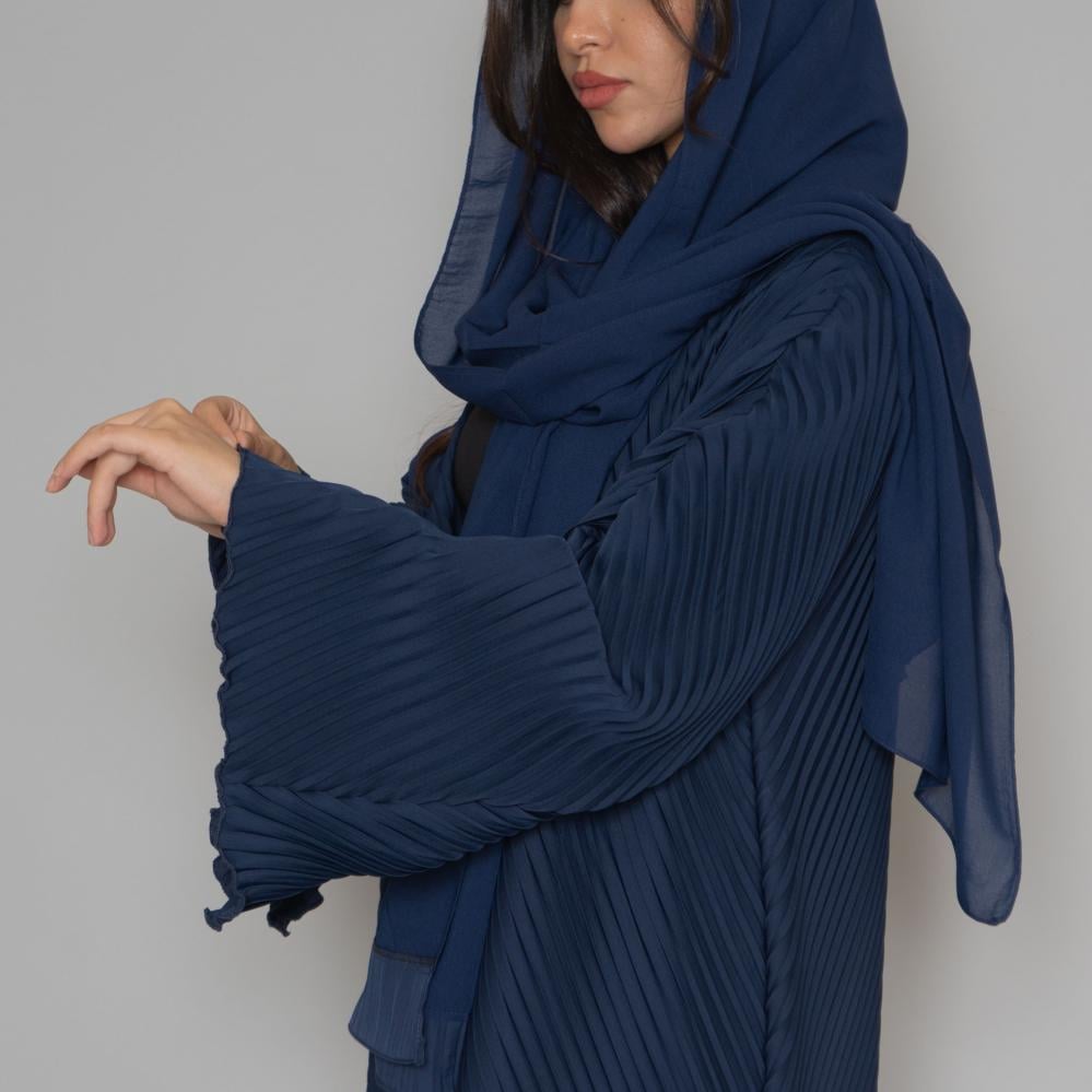 أمول – عباية سوداء بقماش مقلم في الكم والاطراف R1097