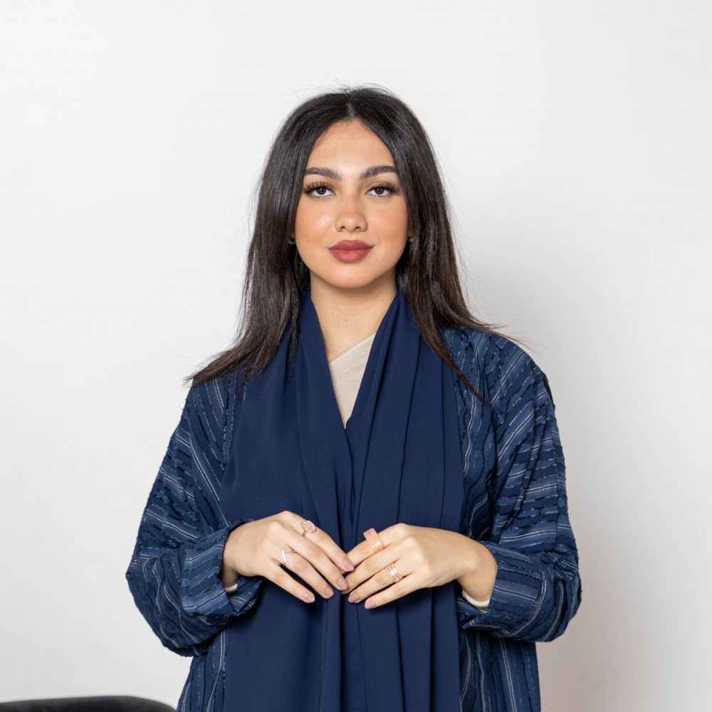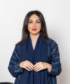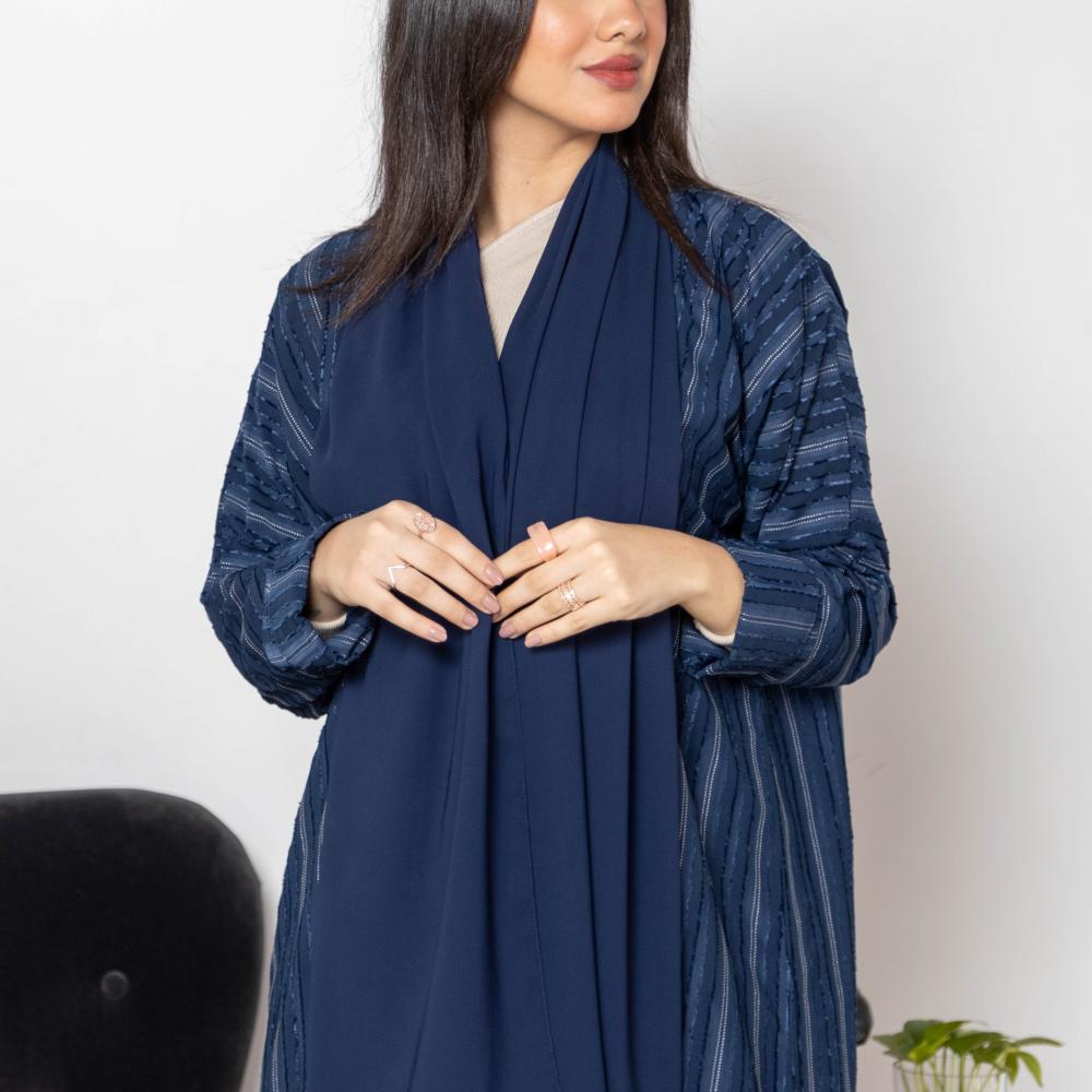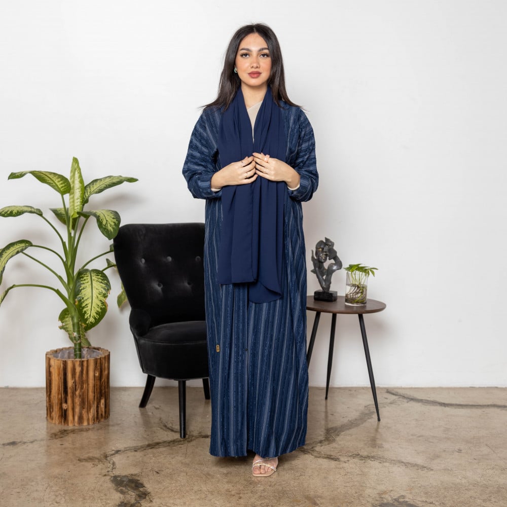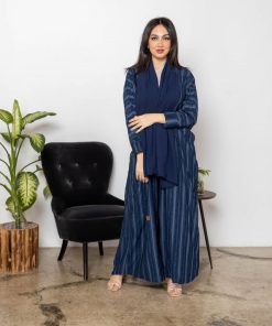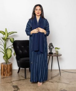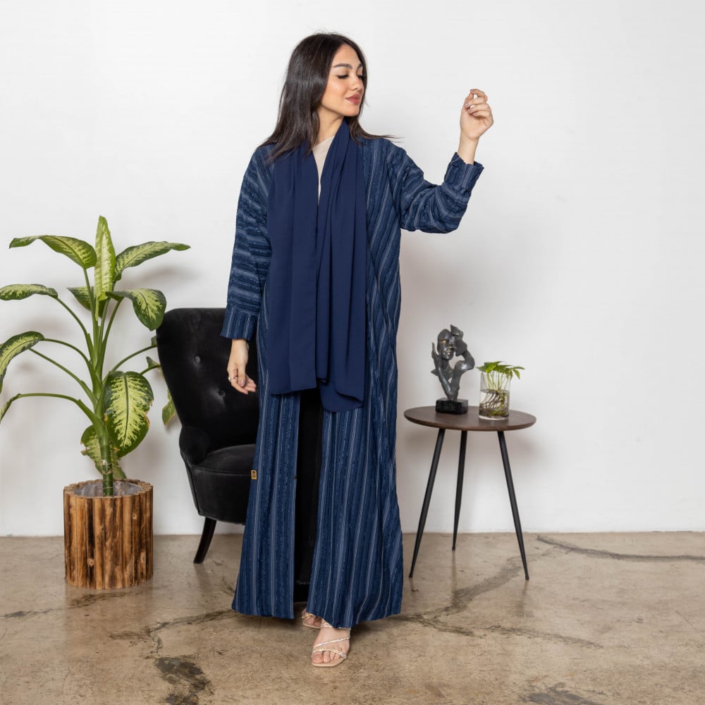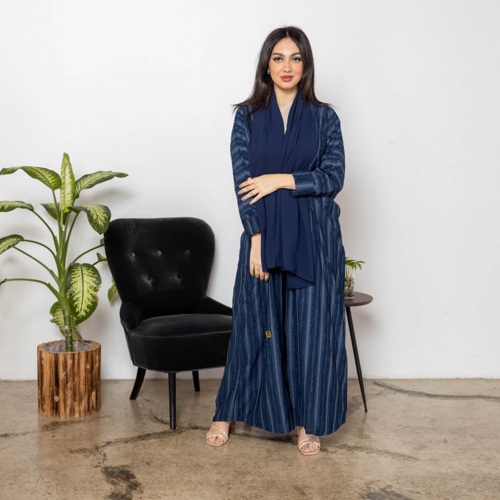 أمول – عباية سودا ء مطرز بخيوط طوليه باشكال متداخله لون ابيض و جالكسي 6058