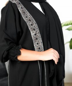 أمول – عباية سوداء بتطريز بأطراف العباية مع كسرات فاخرة من الخلف 6028