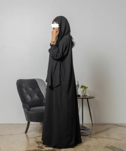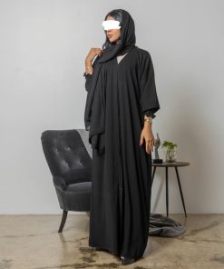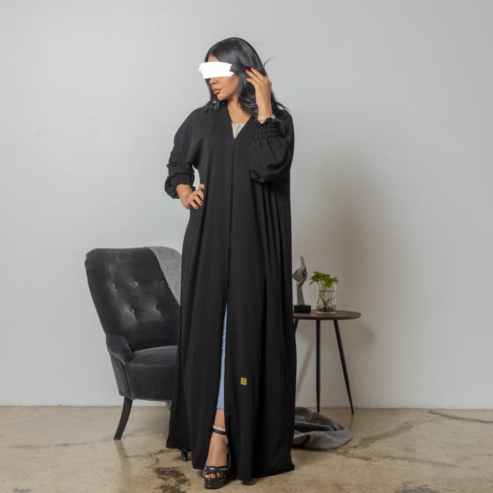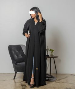أمول – عباية سودا ء بتطاريز خيوط مقلمة اسود و كحلي ولون اسود دانتيل عروق 6047