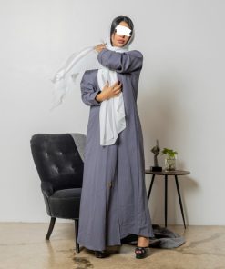 أمول – عباية سوداء بقماش مقلم في الكم والاطراف R1097