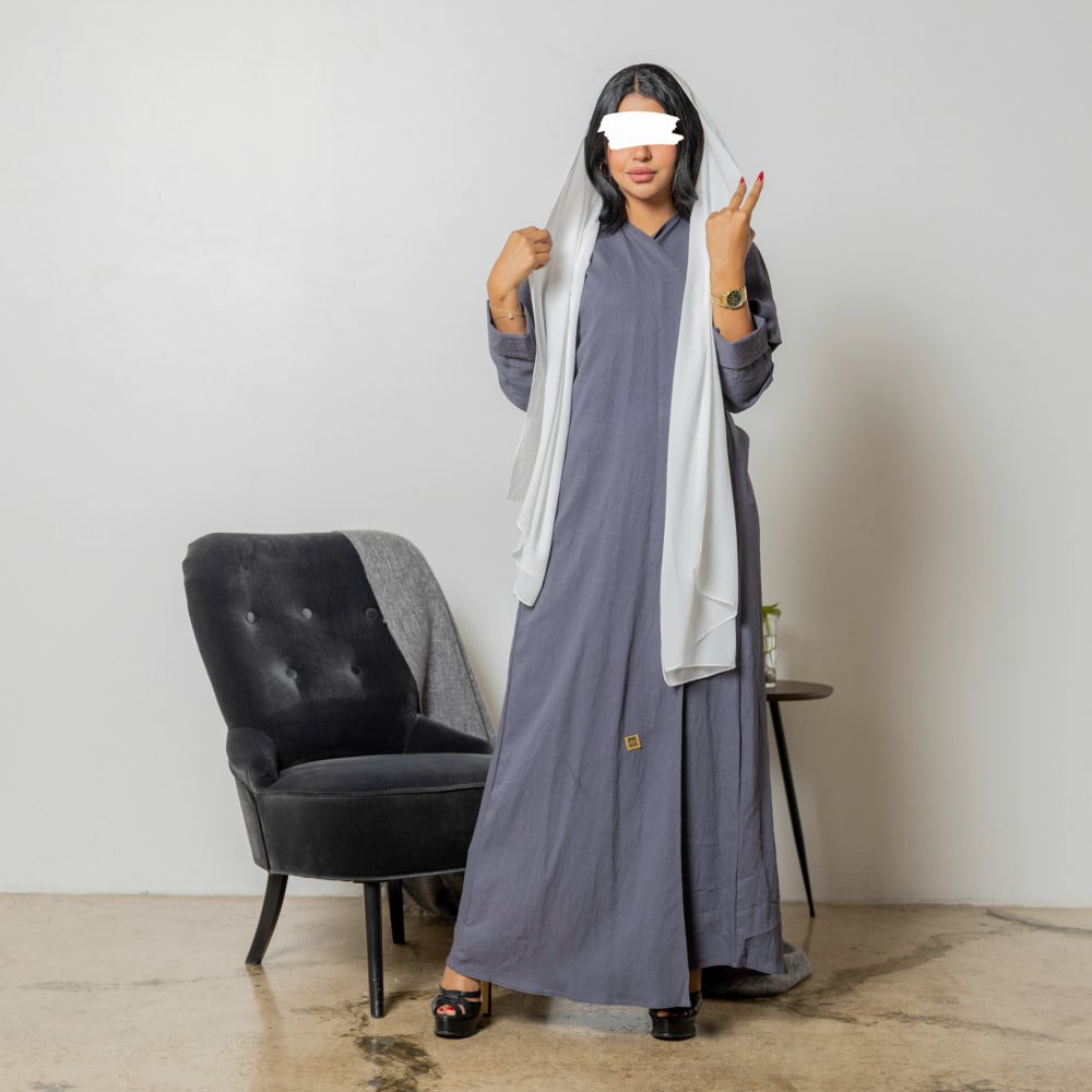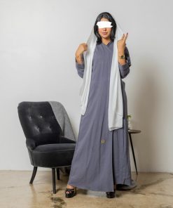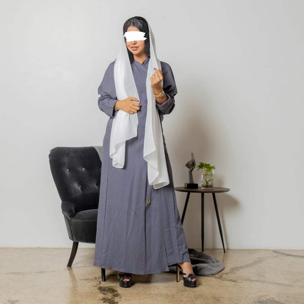 أمول – عباية سودا ء مطرز بخيوط طوليه باشكال متداخله لون ابيض و جالكسي 6058