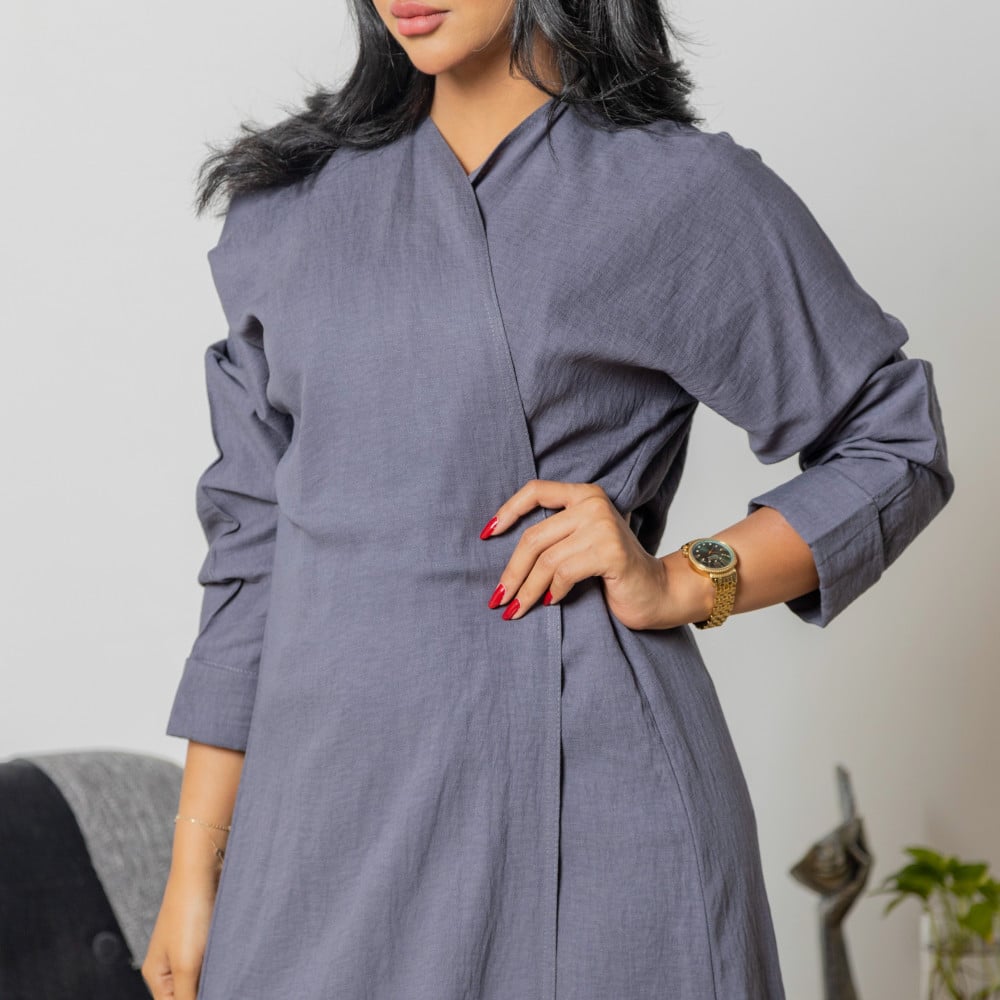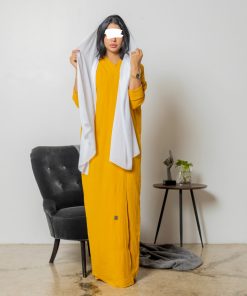 أمول – عباية سودا ء مطرز بخيوط طوليه باشكال متداخله لون ابيض و جالكسي 6058