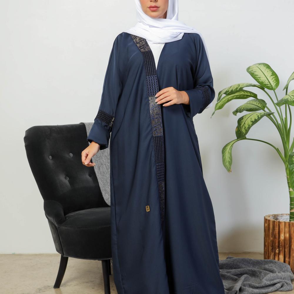 أمول – عباية سوداء بأكمام واسعه ملونة وتطريز مميز R1116