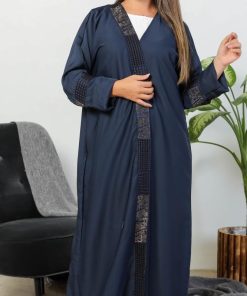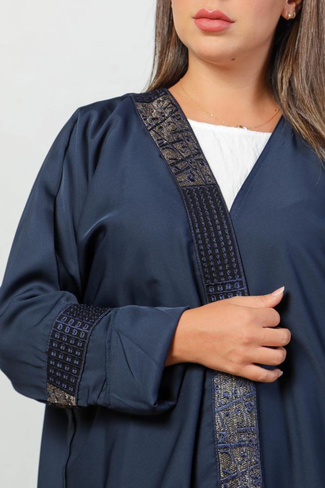 أمول – عباية سودا ء مطرز بخيوط طوليه باشكال متداخله لون ابيض و جالكسي 6058