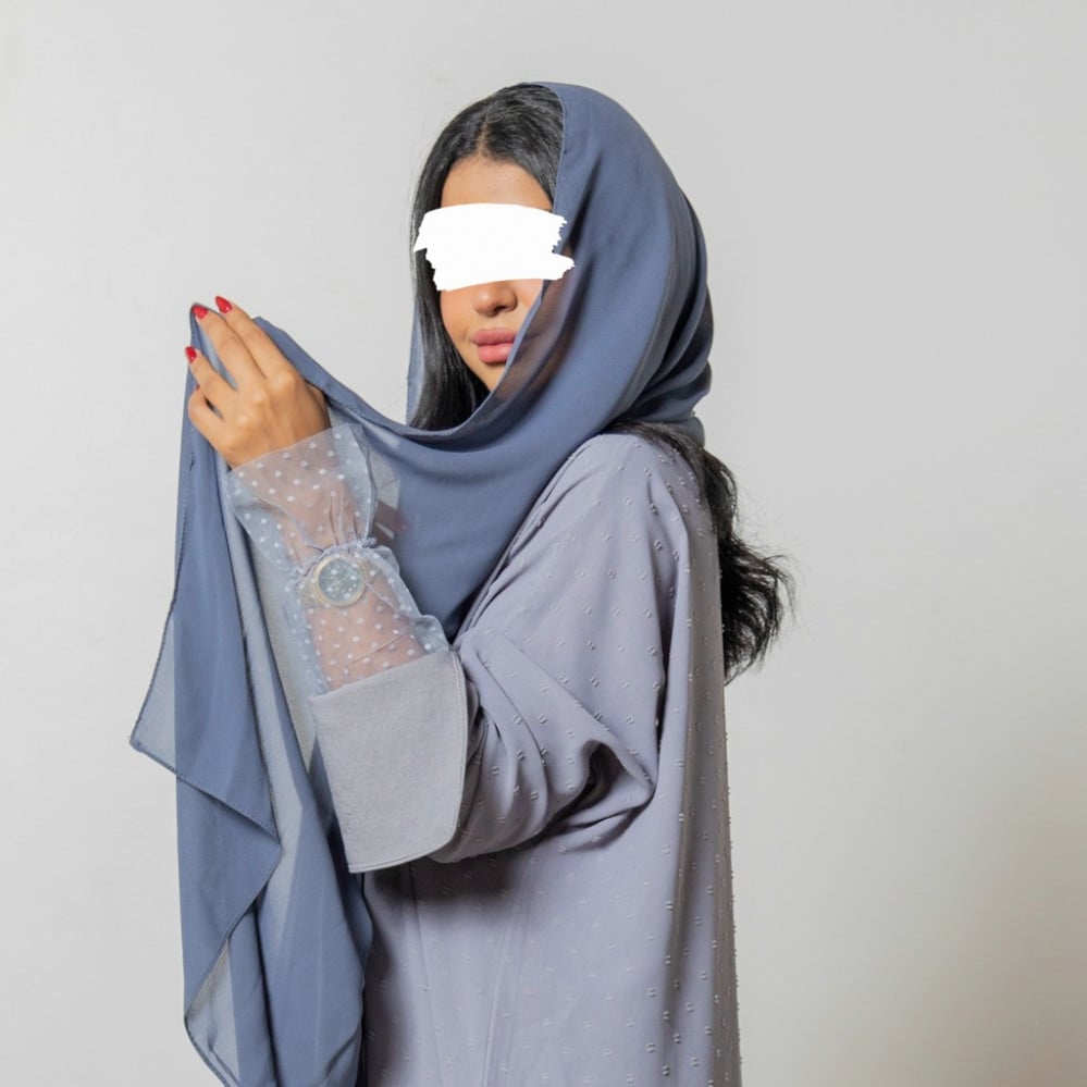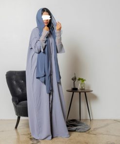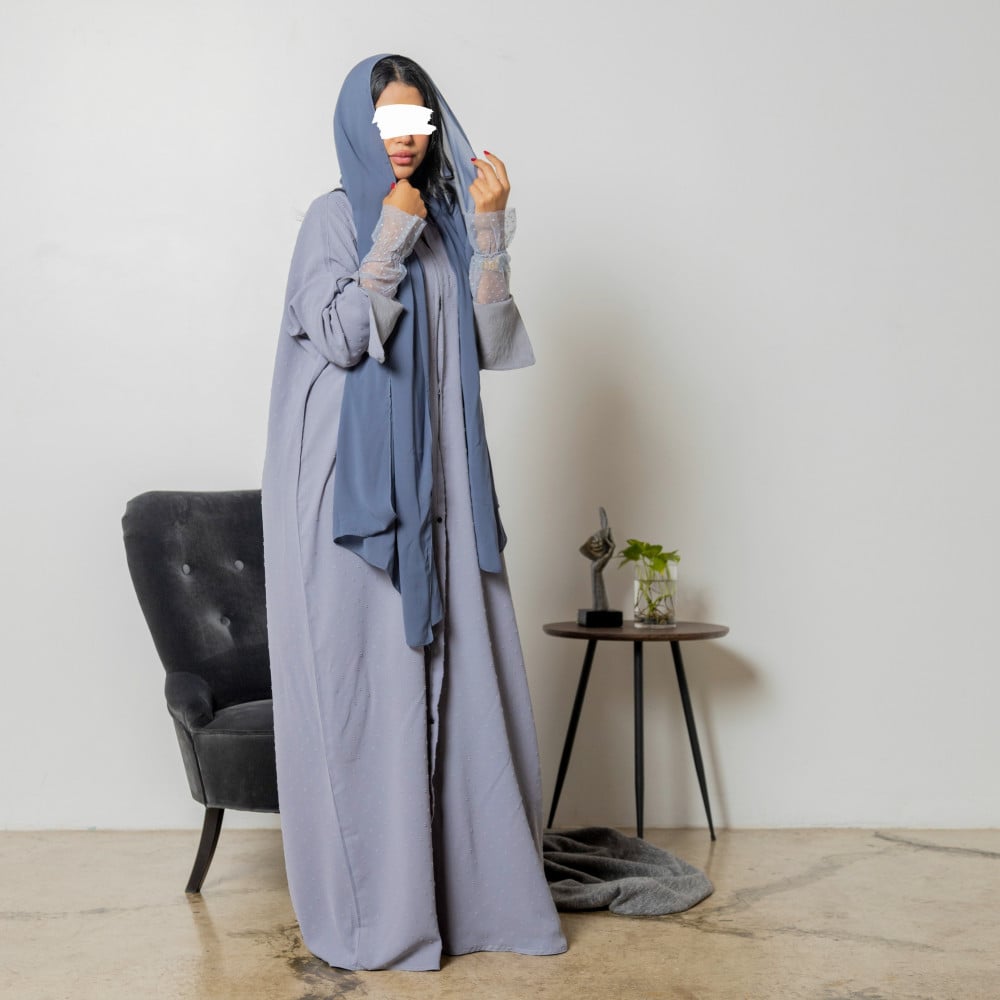 أمول – عباية سودا ء مطرز بخيوط طوليه باشكال متداخله لون ابيض و جالكسي 6058