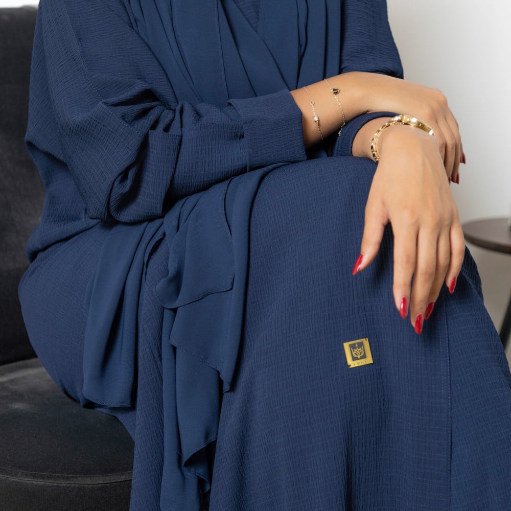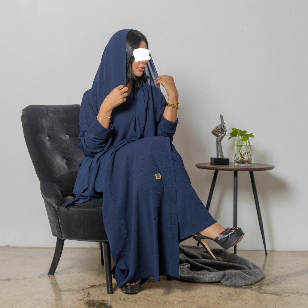 أمول – عباية سودا ء بتطاريز خيوط مقلمة اسود و كحلي ولون اسود دانتيل عروق 6047