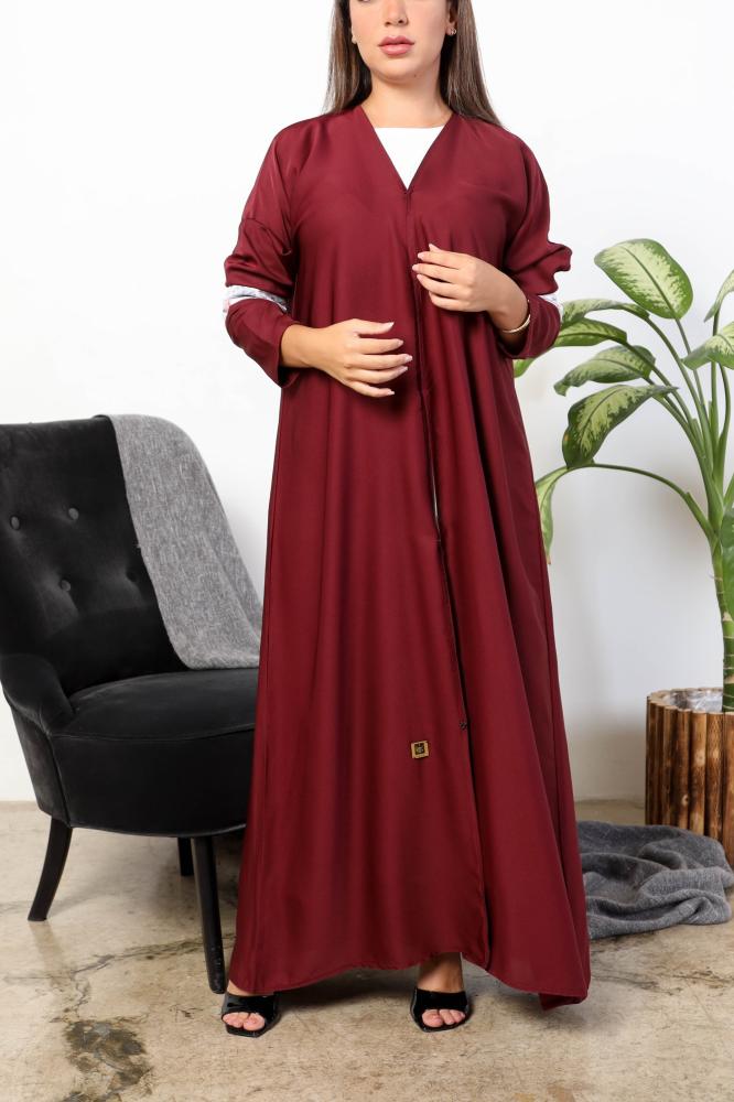 أمول – عباية سوداء بقماش مقلم في الكم والاطراف R1097