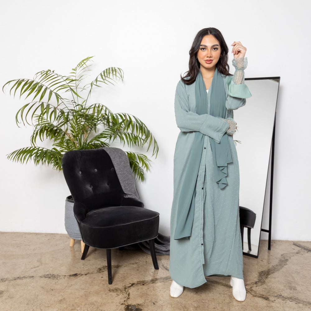 أمول – عباية سودا ء ربع كلوش تطريز كمبيوتر لون ابيض و اسود 6046