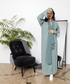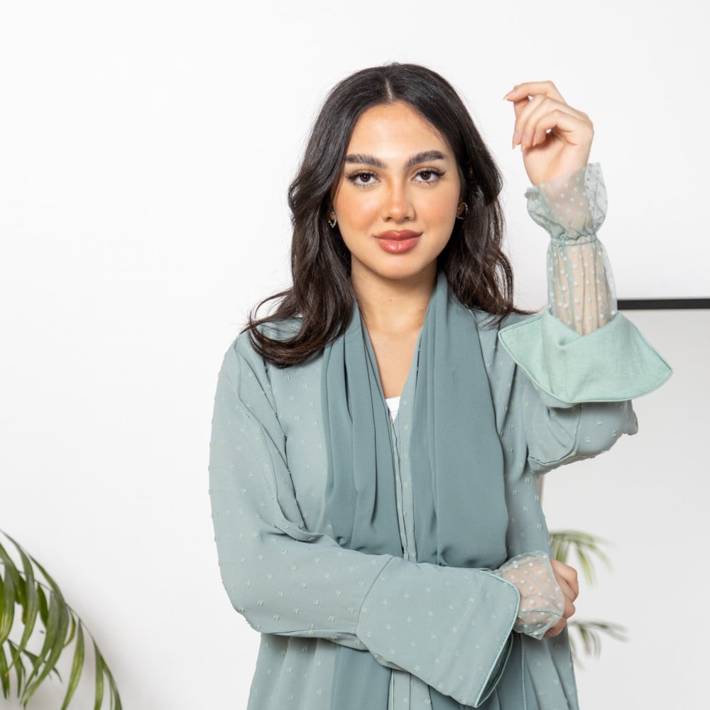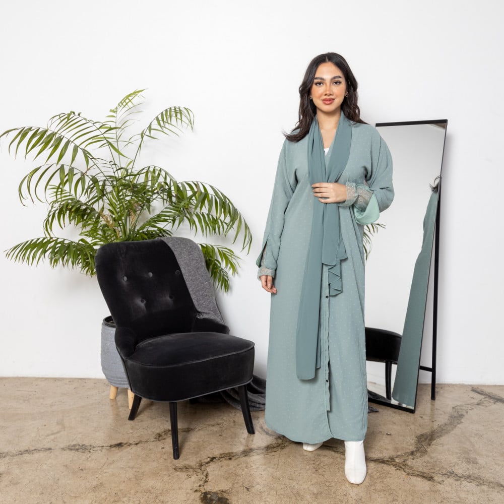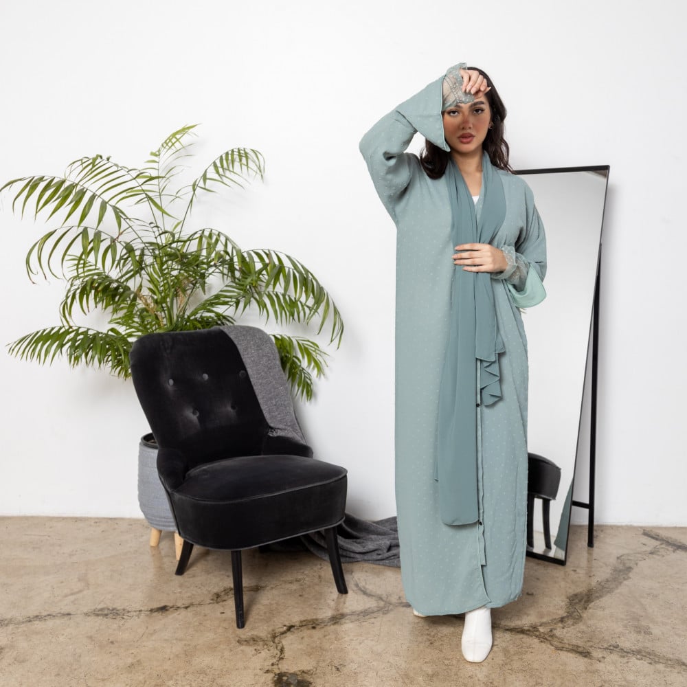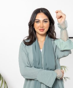 أمول – عباية سودا ء ربع كلوش تطريز كمبيوتر لون ابيض و اسود 6046