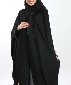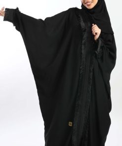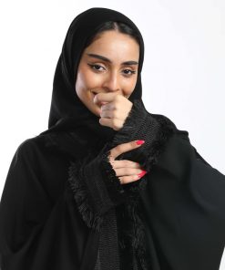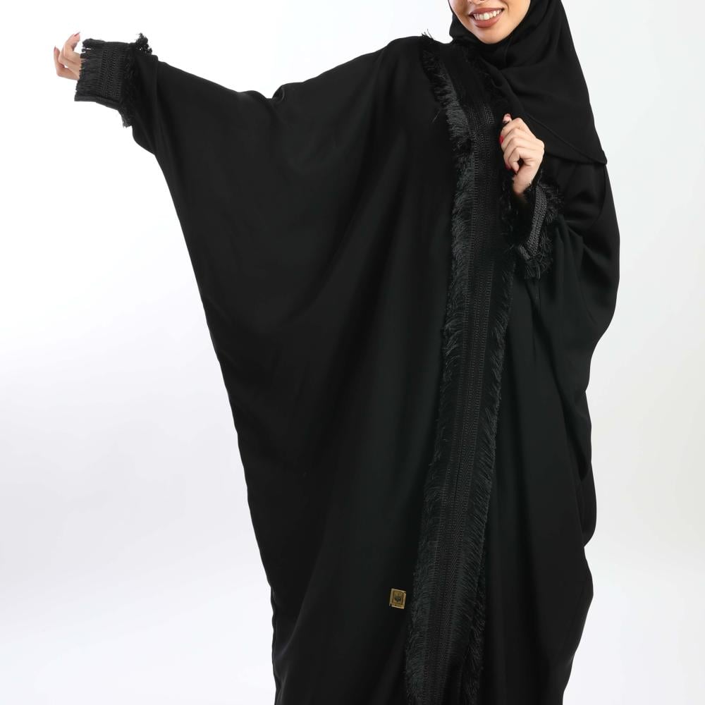 أمول – عباية سوداء بأكمام واسعه ملونة وتطريز مميز R1116