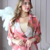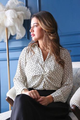 أوبرا فاشن – بلوزة اكمام طويله بنقش رسومات قماش ستان حرير