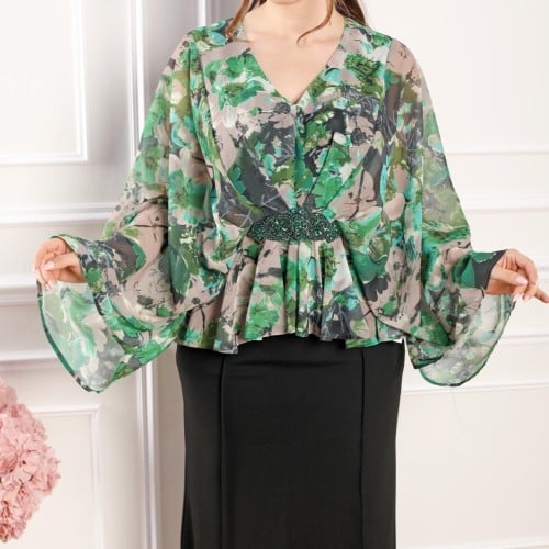 أوبرا فاشن – بلوزه قماش ستان لف على زم اكمام قصيرة