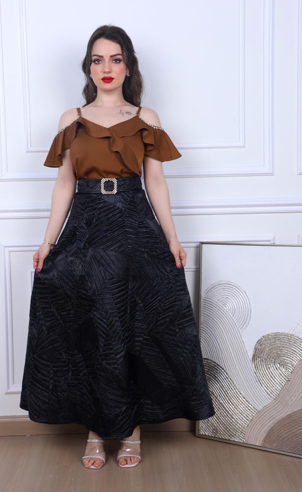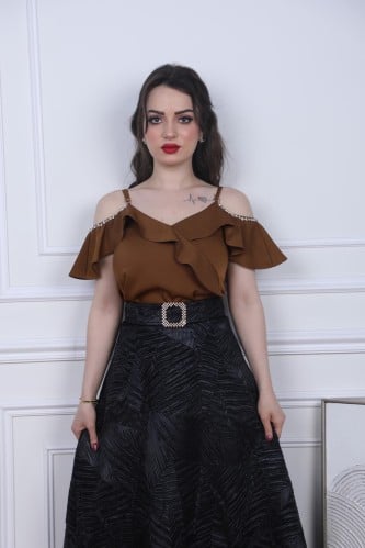 أوبرا فاشن – بلوزة شيفون مشجر على الخصر تطريز سهره