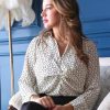 أوبرا فاشن – بلوزه قماش ستان لف على زم اكمام قصيرة
