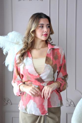 أوبرا فاشن – بلوزة مشجره شيفون بتشجيرة متداخله اكمام طويلة