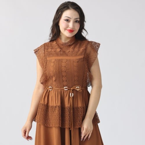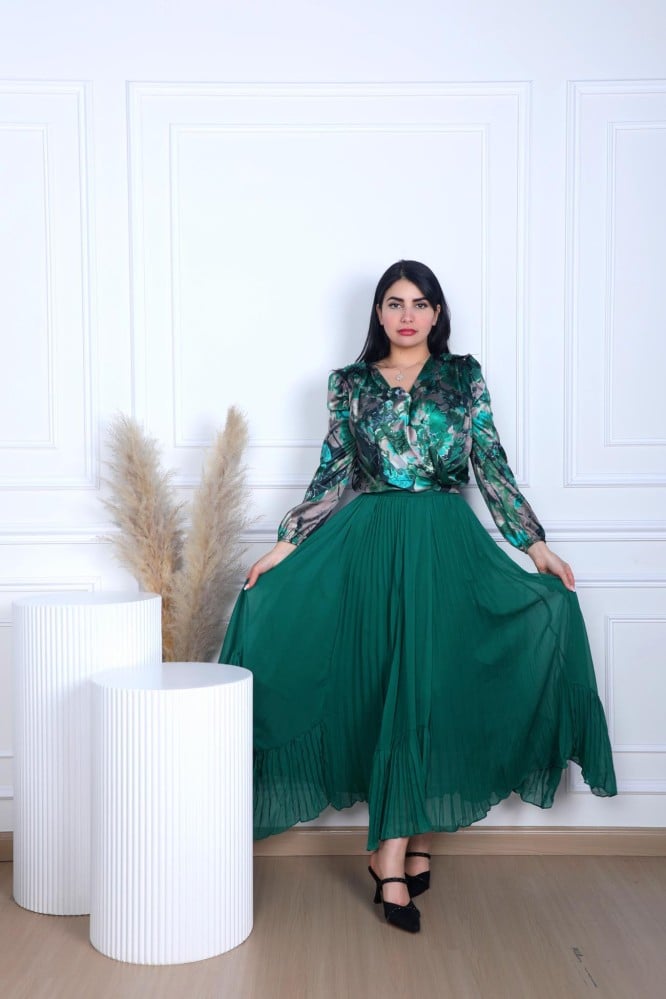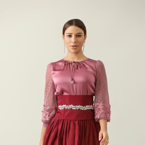 أوبرا فاشن – بلوزة شيفون مشجر على الخصر تطريز سهره