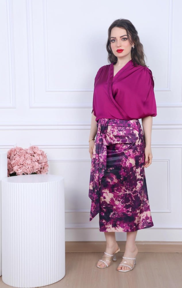 أوبرا فاشن – طقم نسائي سهرة بلوزة شيفون وتنورة ترتر