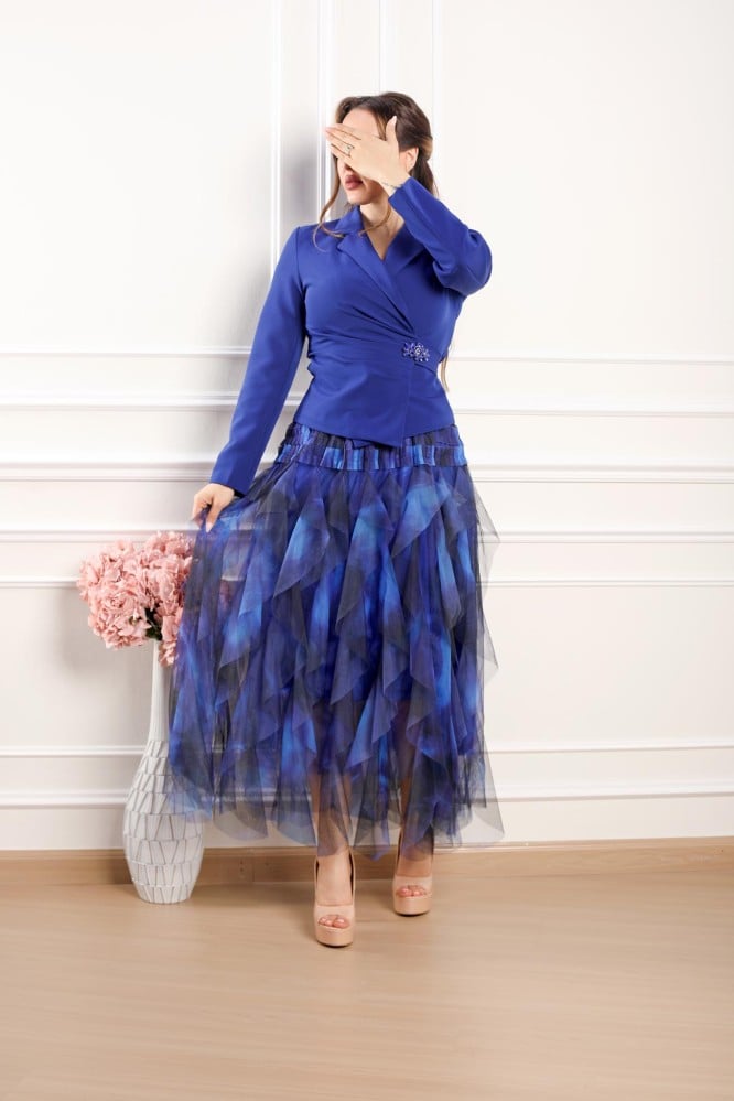 أوبرا فاشن – بلوزة لون كحلي قماش كتان باكمام ميدي