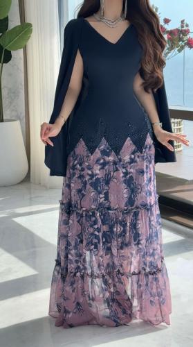 دار الجلابية – عباية كتان بكلفة و تطريز ترتر علي الكم