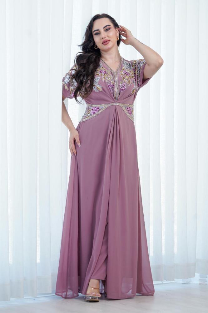 دار الجلابية – عباية كتان بكلفة و تطريز ترتر علي الكم