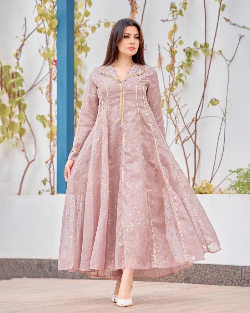 دار الجلابية – عباية كتان بكلفة و تطريز ترتر علي الكم