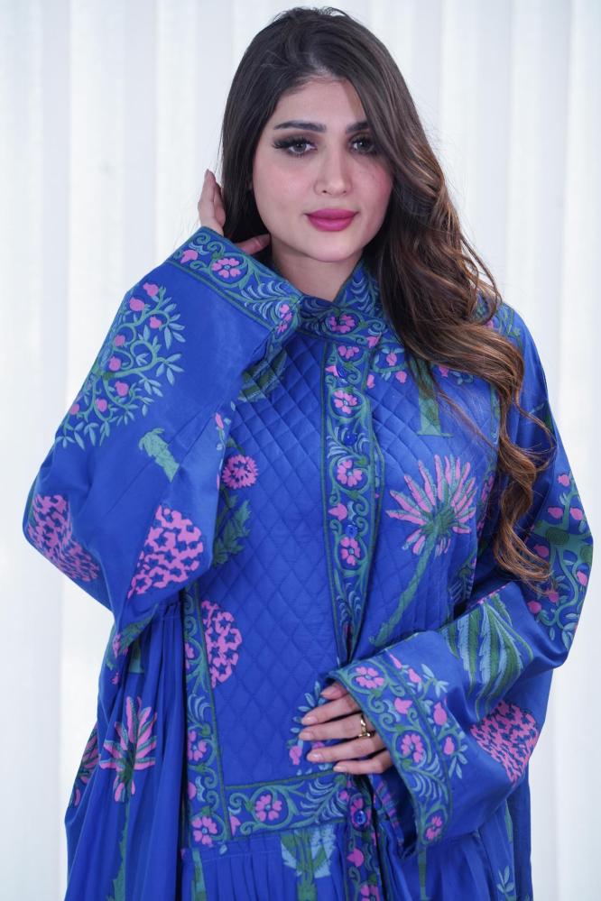 دار الجلابية – عباية كتان بكلفة و تطريز ترتر علي الكم