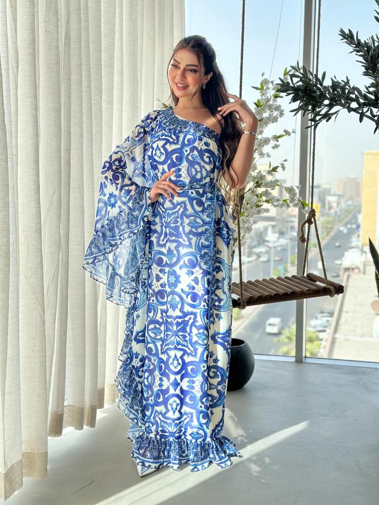 دار الجلابية – عباية كتان بكلفة و تطريز ترتر علي الكم