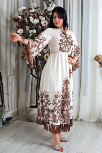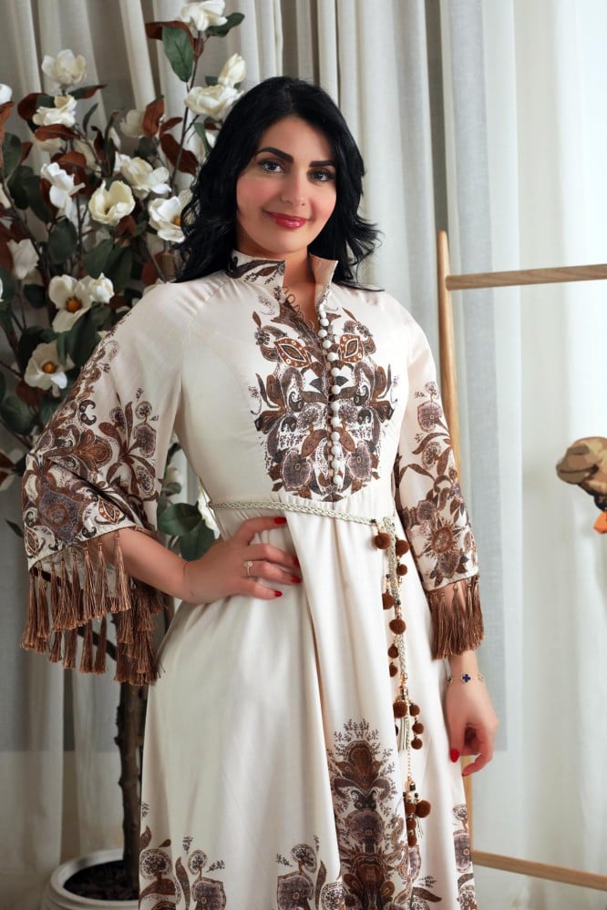 دار الجلابية – عباية كتان بكلفة و تطريز ترتر علي الكم