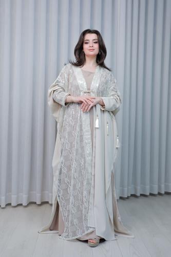 دار الجلابية – عباية كتان بكلفة و تطريز ترتر علي الكم