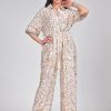 اكتان – جمبسوت وردي أكمام مكشوفة ببقصة بنطال واسع