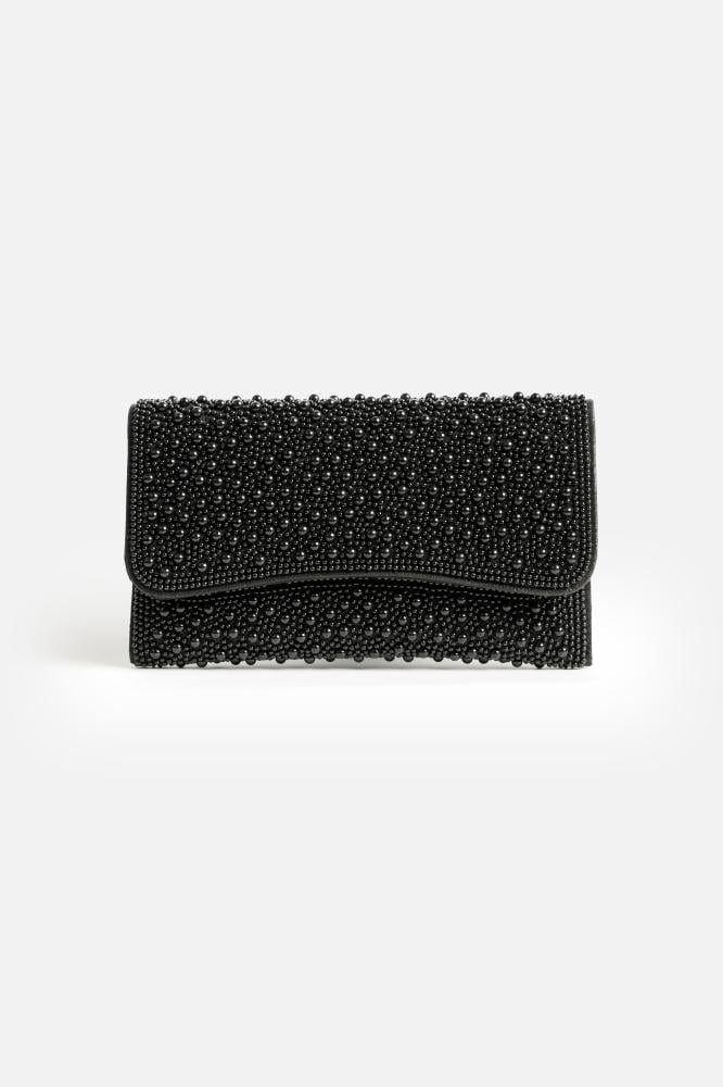 أوبرا فاشن – شنطة يد لوسيندا بتفاصيل هندسية أنيقة بلون أسود ملكي
