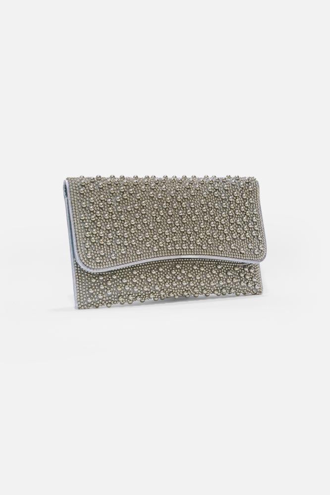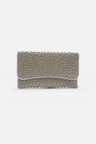 أوبرا فاشن – شنطة يد سهرة مرصعة بكريستالات فاخرة لون رصاصي