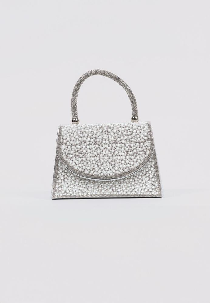 أوبرا فاشن – شنطة يد فاخرة ماركة كريسبلا مطرزة بنقوش بارزة باللون البيج