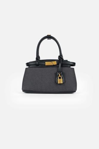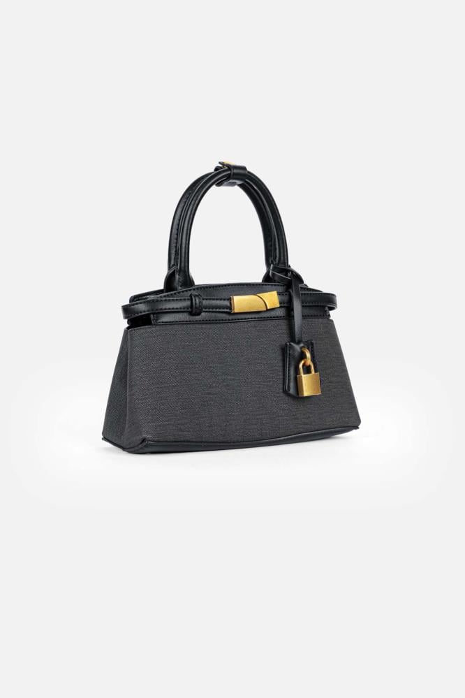 أوبرا فاشن – شنطة يد لوسيندا بتفاصيل هندسية أنيقة بلون أسود ملكي