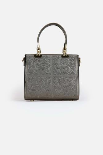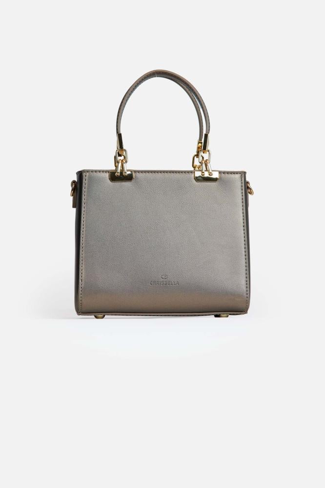 أوبرا فاشن – شنطة يد لوسيندا بتفاصيل هندسية أنيقة بلون رمادي