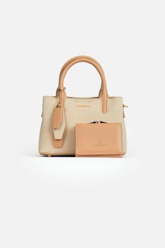 أوبرا فاشن – شنطة يد نسائيه ماركه باجكو بتصميم راقٍ بلون بني غامق و بيج