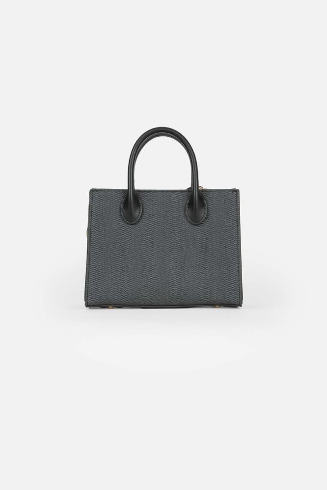 أوبرا فاشن – شنطة يد لوسيندا بتفاصيل هندسية أنيقة بلون أسود ملكي