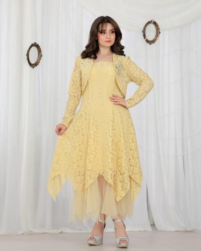أوبرا فاشن – فستان العيد بناتي راقي مع جاكت قصير وتفاصيل دانتيل وكريستال