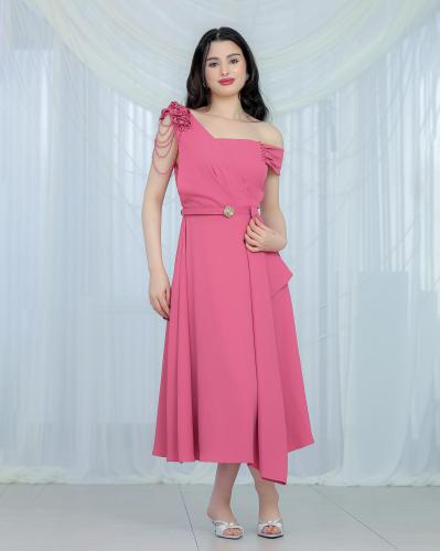 أوبرا فاشن – فستان بناتي كريب بكتف واحد مزين بإكسسوار أنيق