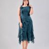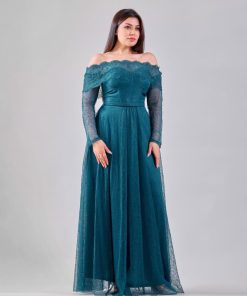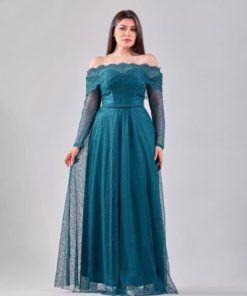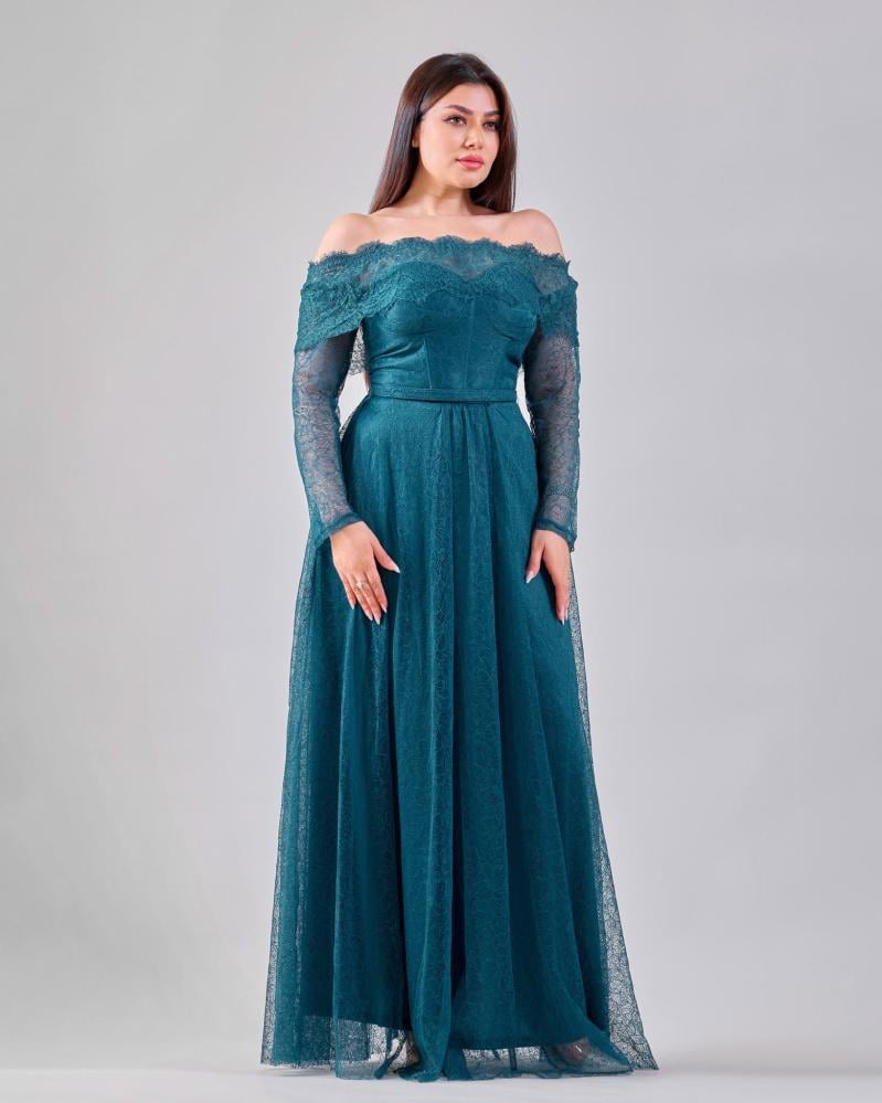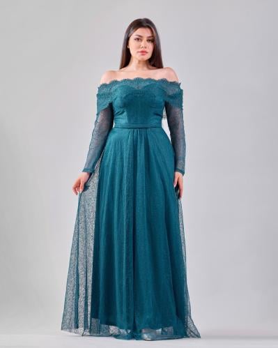 أوبرا فاشن – فستان سهرة أنيق بقصة أوف شولدر وأكمام شفافة